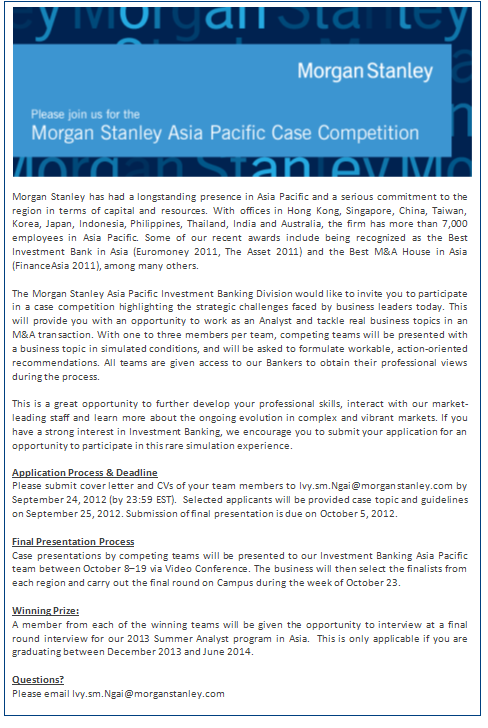 Subject: Invitation: Morgan Stanley Asia Pacific 2012 Case Competition