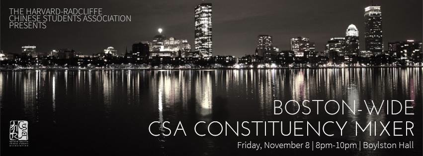Join Harvard CSA on Friday November 8, 8-10PM in Ticknor Lounge for a Boston-Wide CSA Constituency Mixer.