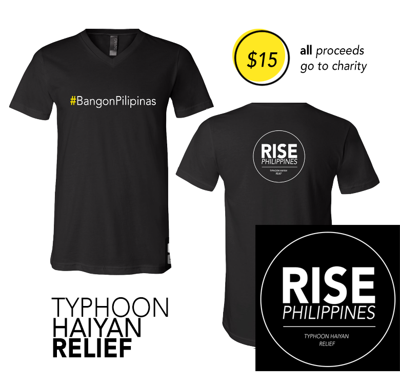 To raise funds toward Typhoon Haiyan relief efforts, show support for the victims, and generate global awareness of this tragic event, we are selling #BangonPilipinas<https://www.facebook.com/hashtag/bangonpilipinas> or "Rise Philippines" t-shirts. Each shirt will be sold for $15, with all proceeds going toward relief efforts. Orders can be placed through this link<http://inktothepeople.com/marketplace/ink-detail/13986> until this Wednesday, November 27th. Shirts will be directly shipped to any specified location. Below is a picture of the tshirts. If you can also share this with friends and family to get the word out, then that would be fantastic!