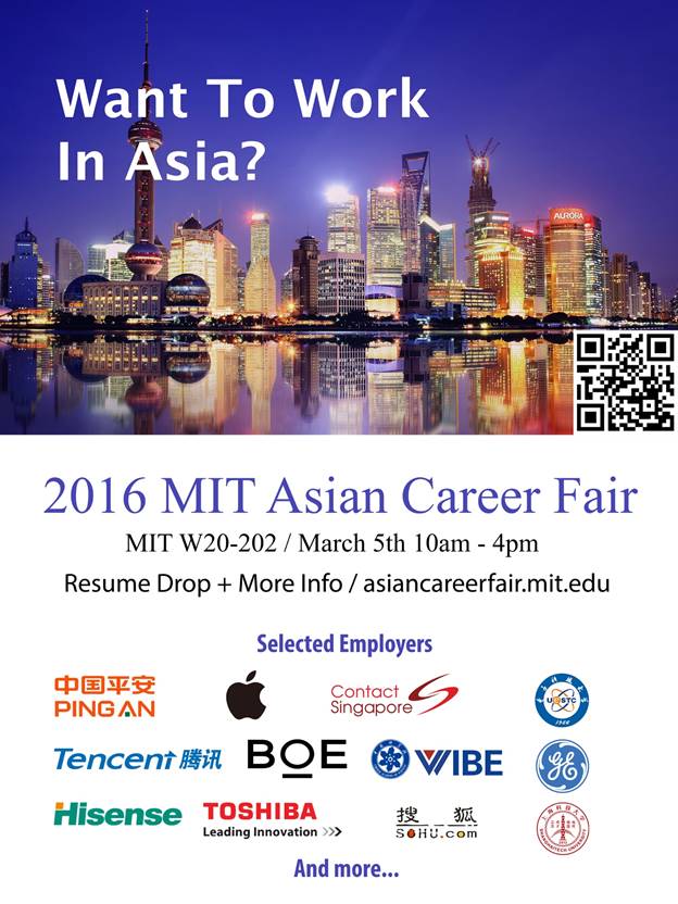 See below for information about the MIT Asian Career Fair on Saturday, March 5!