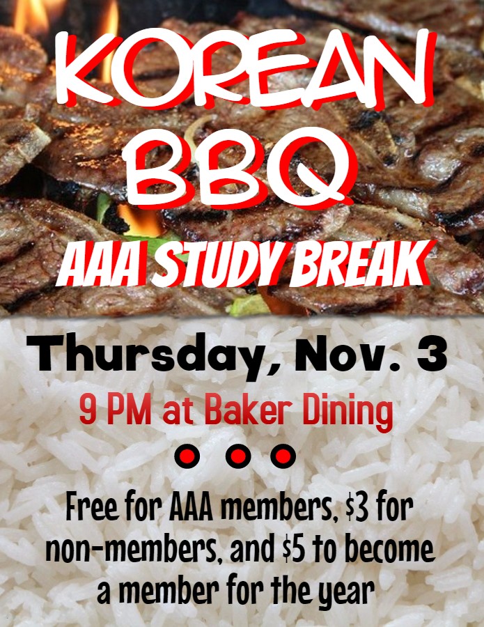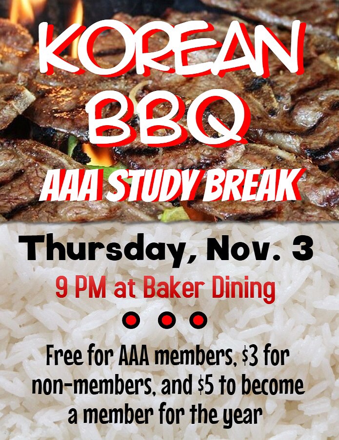 Come enjoy delicious Korean BBQ, hang out with friends, and meet new people! All new members are welcome. You do not have to be Asian to join AAA – you just have to like Asian food and/or culture. ☺