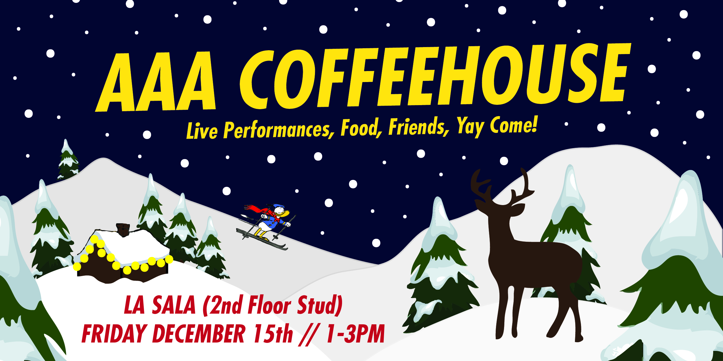 [AAA] ❄❄❄ Coffeehouse Study Break @ the Stud - happening in 30 minutes!! ❄❄❄