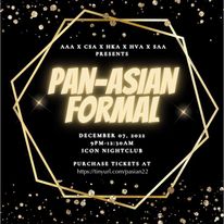 The Harvard-Radcliffe Asian American Association, the Harvard South Asian Association, the Harvard Korean Association, the Harvard-Radcliffe Chinese Students Association, and the Harvard Vietnamese Association present the Pan-Asian Formal, which will take place on Wednesday, December 7 from 9 pm to 12:30 am at Icon Nightclub in Boston. Due to venue restrictions, you must be 18+ to attend the Pan-Asian Formal. The dress code is semi-formal to formal. All identities are welcome. ______________________________________________ Pricing details are as follows: Tickets will cost $30 if purchased beforehand via this Google Form, and $35 at the door. All tickets are non-refundable. Email the AAA secretary at davinshi at college.harvard.edu if you have any questions or concerns about ticketing. For all other inquiries, contact harvard.radcliffe.aaa at gmail.com.