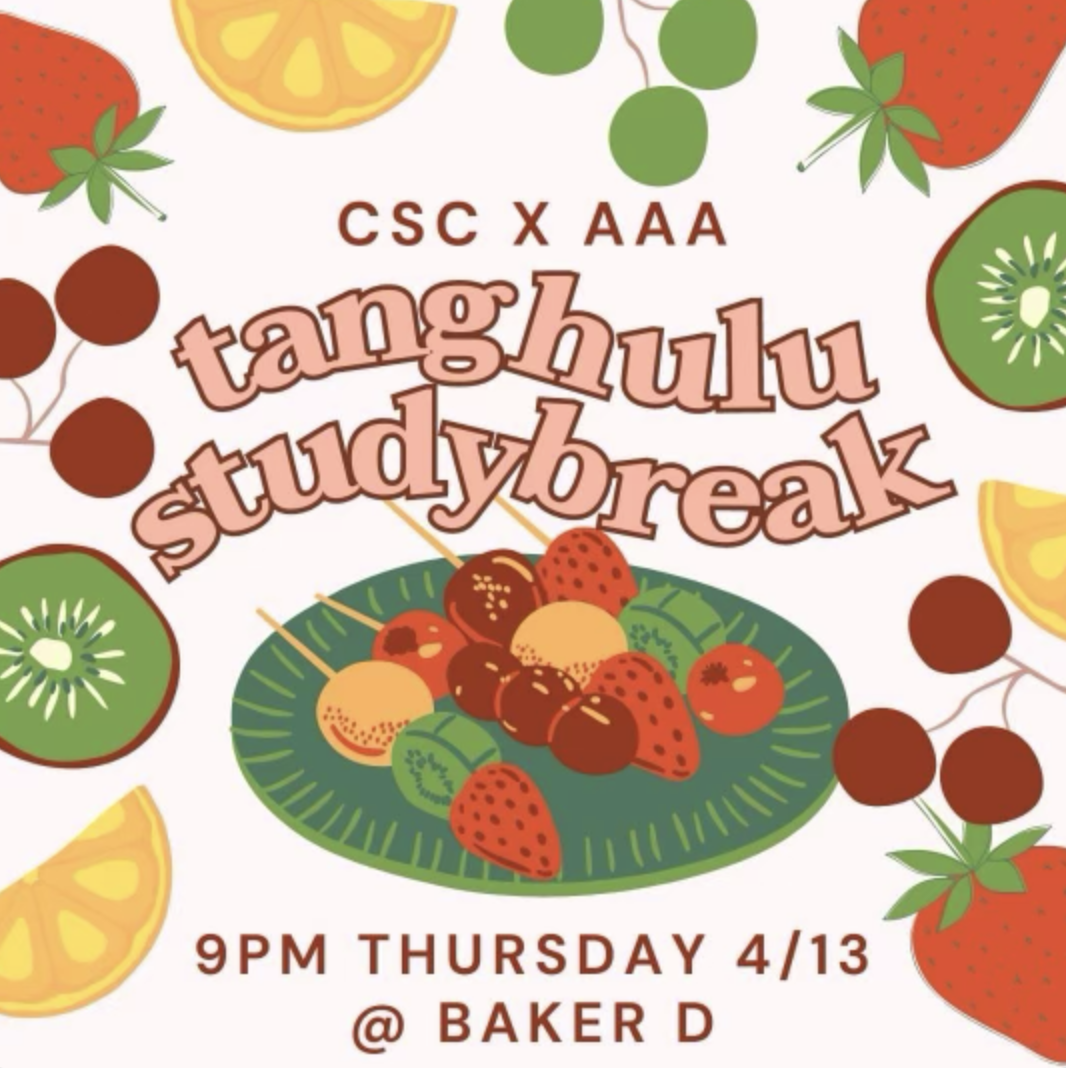 Are you looking for something fun to do this Thursday night? AAA and CSC are joining forces to host a tanghulu making party at Baker D, and everyone is welcome + FREE ENTRY!