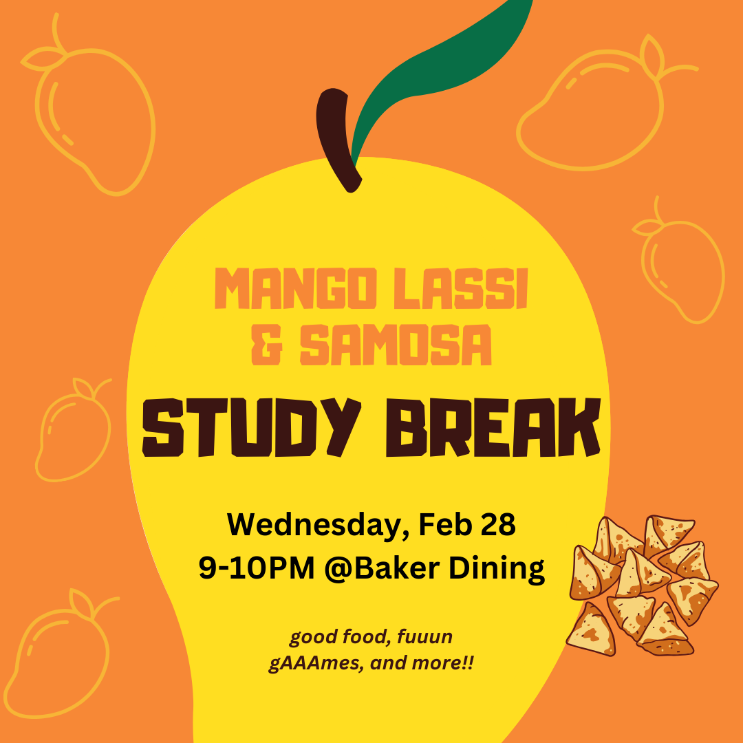TLDR; Wednesday (2/28) @9PM Baker Dining, mAAAngo lassi and sAAAmosas and ddAAAkji