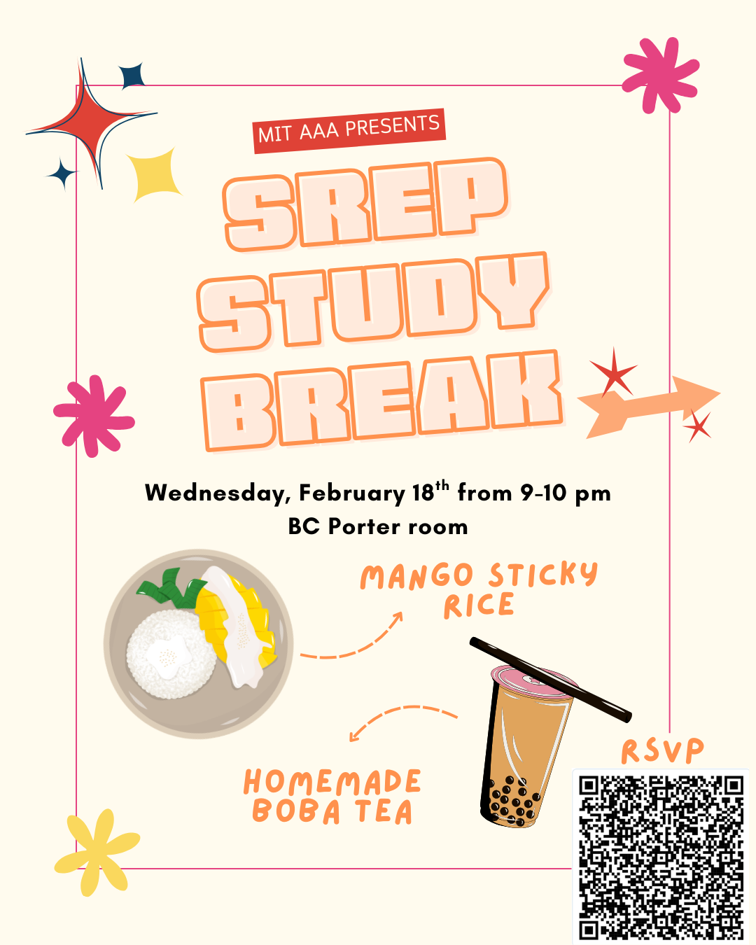 📌 SREP STUDY BREAK *THIS WEDNESDAY* @ BC Porter Room from 9-10 PM