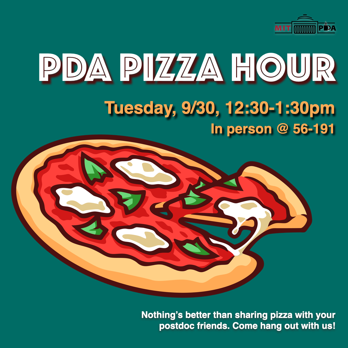Happy new semester! To celebrate, we are trying out turning our traditional coffee and pastry hour to PIZZA hour! And who doesn’t want to hang out with pizza in their hands? Come connect with fellow postdocs, hear updates from PDA officers, and enjoy deliciously free pizza from the PDA! Register<https://docs.google.com/forms/d/e/1FAIpQLSfGPdgh08l-lNgvuh3530YjRFrGet1k1msP7YvHrNsvBB-_HA/viewform?usp=header> to help us get a headcount for pizza.